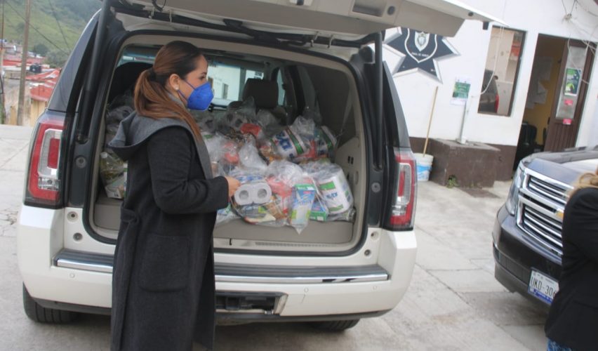 Pinal de Amoles, Qro., 7 de octubre de 2021.- La diputada federal Sonia Rocha Acosta visitó zonas en estado de emergencia en Pinal de Amoles para llevar paquetes con alimentos de la canasta básica. 157 familias de tres comunidades fueron afectadas en dicho municipio por las fuertes lluvias.