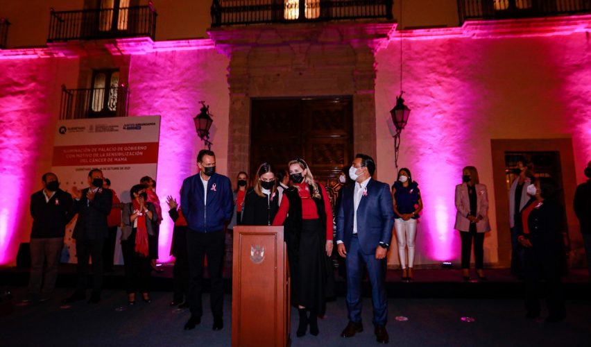 Iluminan Palacio de Gobierno por el Día de la Lucha contra el Cáncer de Mama