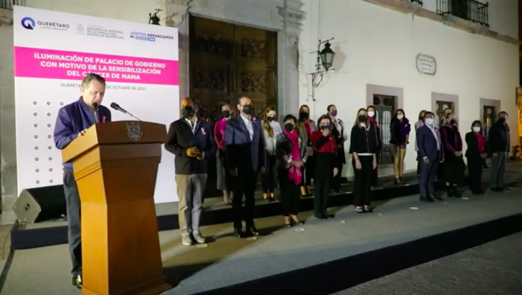 La Casa de la Corregidora se iluminó de rosa para recordar la importancia de la prevención y oportuna detección del cáncer de mama, con motivo del Día Internacional de la Lucha contra el Cáncer de Mama, que es el 19 de octubre.
