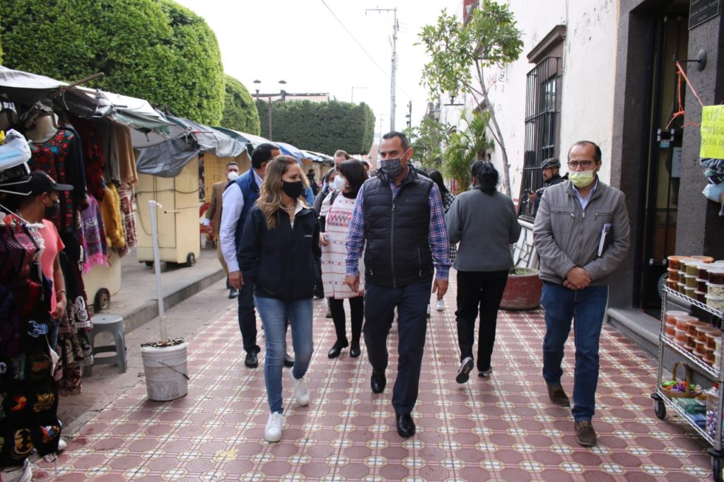 San Juan del Río, Qro., 21 de octubre de 2021.- La secretaria de Turismo de Querétaro, Mariela Morán Ocampo, recorrió San Juan del Río en compañía del presidente municipal Roberto Cabrera y la directora del Centro INAH en Querétaro, Rosa Estela Reyes García, con la intención de conocer los proyectos en materia turística que hay actualmente.