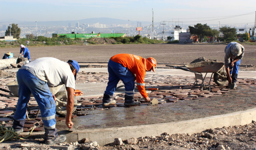 En punto de las 7:00 de la mañana, Francisco San Juan, Erika Pacheco y otros 16 trabajadores se preparan para trabajar en la obra del parque Fraternidad de Santiago, en el corazón de la delegación Josefa Vergara en el municipio de Querétaro.