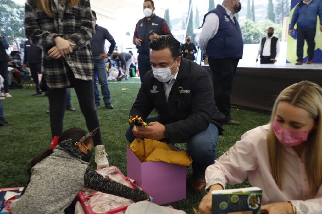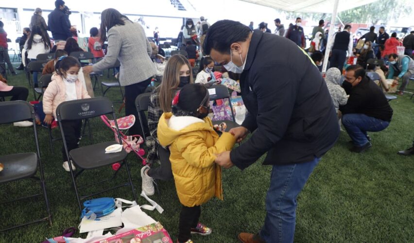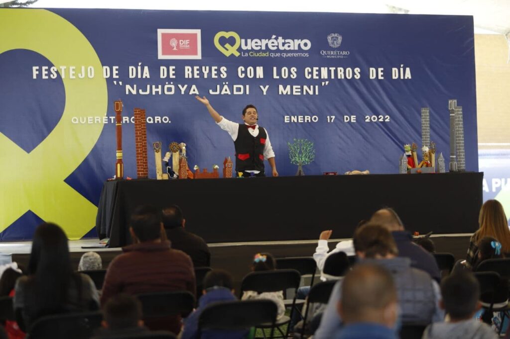 Querétaro, Qro., 17 de enero de 2022.- El alcalde de Querétaro Luis Nava y Arahí Domínguez, presidenta del DIF municipal, encabezaron las celebraciones de Día de Reyes en la Unidad Deportiva La Purísima. El evento se realizó para el disfrute de los niños de los centros de día Njhöya, Jädi y Meni.