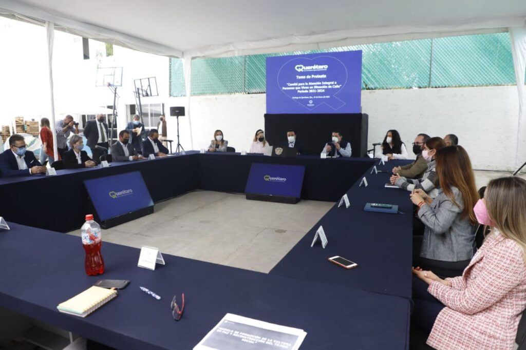 Querétaro, Qro., 24 de enero de 2022.- El presidente municipal de Querétaro, Luis Nava, encabezó la toma de protesta del Comité para la Atención Integral a Personas que Viven en Situación de Calle, que tiene el objetivo de atender a esta población vulnerable y darles opciones que les permitan mejorar su calidad de vida.