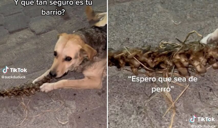 Ecatepec, Edomex, 18 de noviembre de 2022.- Un usuario de TikTok compartió imágenes de un perro masticando una columna vertebral, preocupado porque los restos óseos pudieran ser humanos.