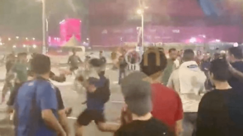 A través de redes sociales comenzó a circular un video en el que se muestra a ambas aficiones intercambiar golpes e insultos en una de las principales avenidas de la sede mundialista; en ninguno de los videos que circulan en Twitter se observa la intervención de las autoridades qataríes.