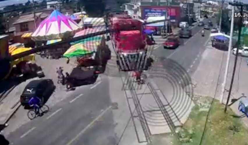 Papalotla, Tlax., 17 de julio de 2023.- Este domingo 16 de julio, la Comisión Ejecutiva del Sistema Estatal de Seguridad Pública de Tlaxcala publicó un video en el cual se ve a un ciclista cuando es golpeados por un tren al tratar de ganarle el paso. Los hechos ocurrieron en el municipio de Papalotla.