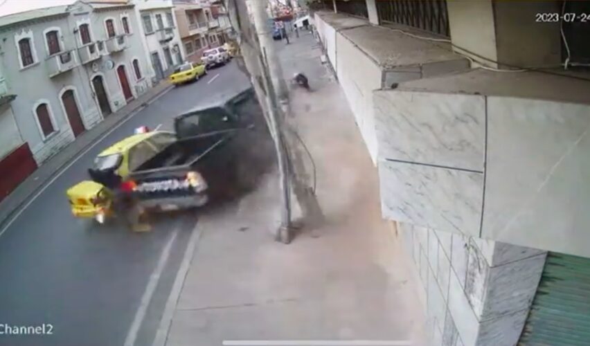 Riobamba, Ecuador, 25 de julio de 2023.- Una cámara de vigilancia registró el momento en que una camioneta atropelló brutalmente a dos adultos mayores en la ciudad de Riobamba, Ecuador. El conductor iba en estado de ebriedad y acabó con la vida de la pareja.