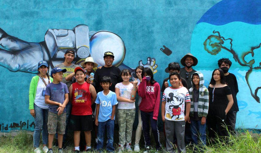 Corriendo de un lado a otro, jugando futbol, riendo y con las manos llenas de pintura, las niñas y los niños del vecindario Colinas de Santa Cruz 2° Sección concluyeron una semana de arduo trabajo pintando un mural comunitario, para enchular el lugar donde acostumbran reunirse para jugar.