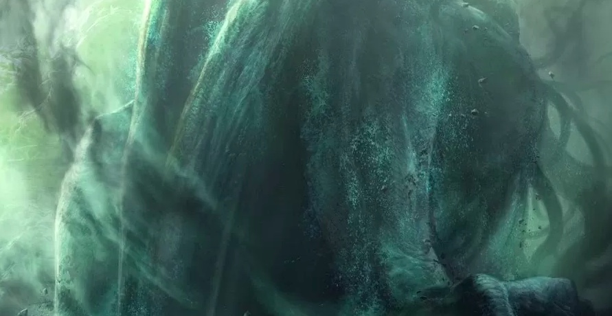 Supongo que lo que realmente llegó a emerger de las aguas no era más que una cima, una horrible ciudadela coronada por el monolito bajo el que el Gran Cthulhu estaba enterrado. Cada vez que pienso en cuánto debe estar gestándose allá abajo casi me entran ganas de poner fin a mi existencia de inmediato. Johansen y sus hombres sintieron un gran respeto por la majestuosidad de aquella rezumante Babilonia de antiguos demonios, y debieron haberse figurado por sí mismos que nada de eso pertenecía a este o cualquier otro planeta saludable. El asombro ante el increíble tamaño de los verdosos bloques de piedra, la vertiginosa altura del gran monolito esculpido, y la desconcertante identidad de las colosales estatuas y bajorrelieves (…).