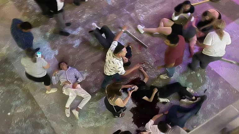 El accidente ocurrió cuando un vidrio barandal colapsó desde una altura superior a los 12 metros, provocando la caída de más de una decena de personas que se encontraban en el lugar.