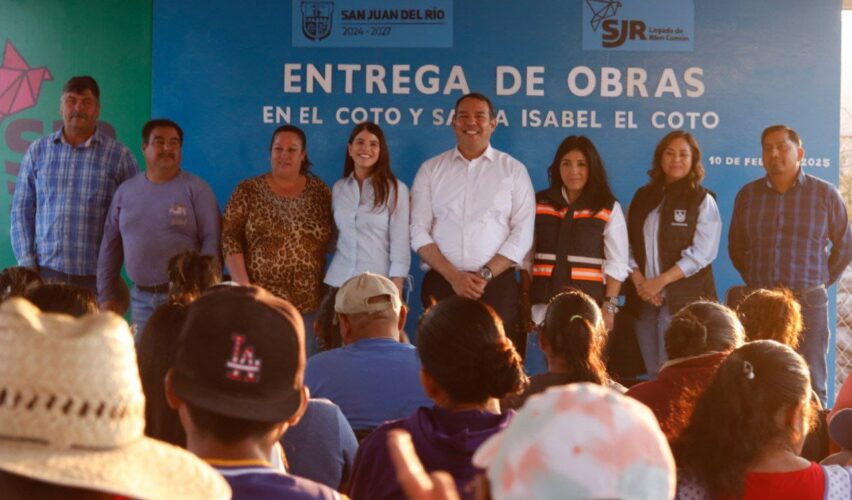 San Juan del Río, Qro., 11 de febrero de 2025.- El presidente municipal de San Juan del Río, Roberto Cabrera Valencia, entregó obras en las comunidades de El Coto y Santa Isabel El Coto que tuvieron una inversión de más de 4 millones 250 mil pesos. El alcalde destacó que estas acciones mejoran la infraestructura, fortalecen la seguridad, el desarrollo y la convivencia entre las familias.