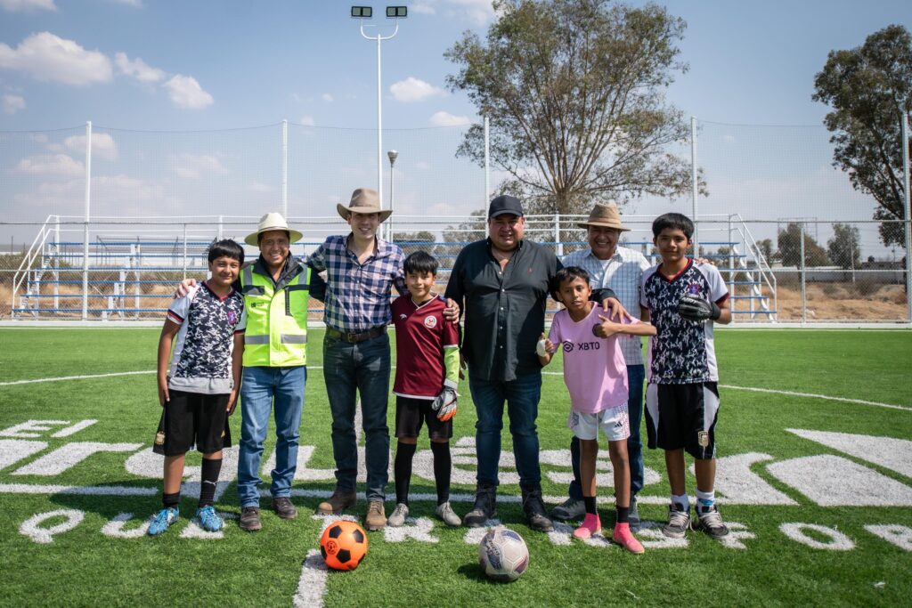 Los trabajos incluyeron la intervención de la cancha de fútbol, la construcción de un andador peatonal para el acceso a la cancha y trabajos de mejoramiento en la cancha de fútbol 7. Estas acciones beneficiarán a cinco mil 494 habitantes, impulsando el deporte y la convivencia comunitaria.