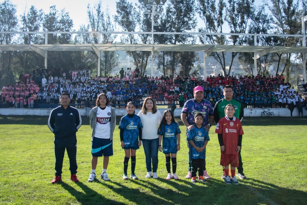 Durante la entrega de uniformes, Martínez Guevara destacó la importancia de impulsar el deporte desde una edad temprana, ya que no solo fortalece el desarrollo físico de los niños y adolescentes, sino que también promueve valores como la disciplina, el respeto y la convivencia.