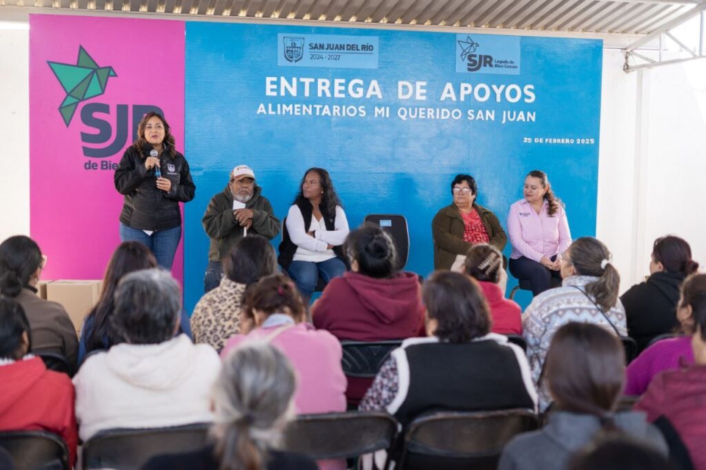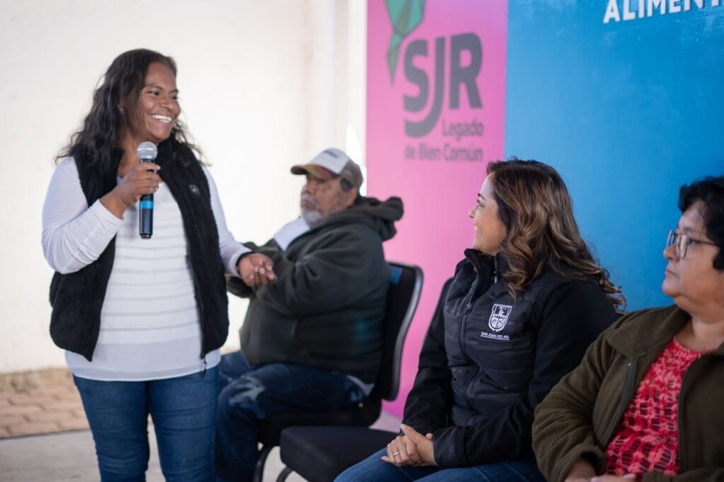 La subdelegada del Barrio de La Cruz, María de Jesús Velázquez González, agradeció al presidente municipal de San Juan del Río, Roberto Cabrera Valencia, por la entrega de apoyos alimentarios para la población. En su oportunidad, la beneficiaria de este programa, Rosita Cervantes, se sumó al agradecimiento y señaló que, con estos apoyos, también se fortalece la economía de las familias.