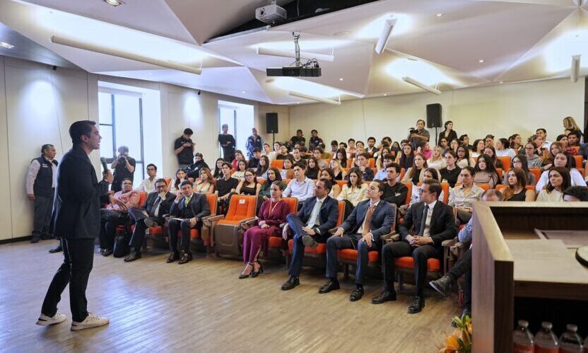 Frente a estudiantes, profesores y autoridades académicas, Felifer Macías llamó a la juventud a asumir un rol participativo en el gobierno y refrendó su interés de hacer equipo con las y los universitarios.