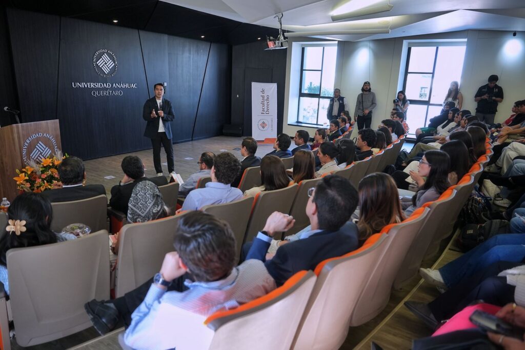 Querétaro, Qro., 26 de febrero de 2025.- En el marco de la Segunda Semana de Derecho de la Universidad Anáhuac, el presidente municipal de Querétaro, Felifer Macías ofrece la ponencia “El rol del abogado en el ejercicio de la función pública” donde frente a estudiantes de la Facultad de Derecho destacó la importancia de cumplir con la normatividad en el ejercicio público.