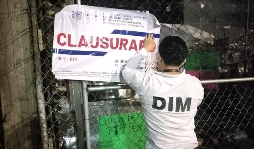 Posteriormente, al corroborar que los comercios no contaban con la licencia de funcionamiento municipal de El Marqués, ni con la licencia estatal para la venta de alcohol, los inspectores municipales llevaron a cabo la clausura de ambos establecimientos.