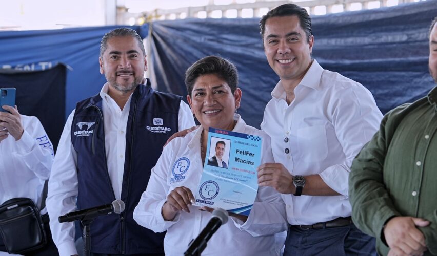 Durante el evento, representantes y líderes de comerciantes de la Fecopse hicieron entrega de la credencial de socio activo y distinguido a Felifer Macías, por el apoyo que han recibido los comerciantes.