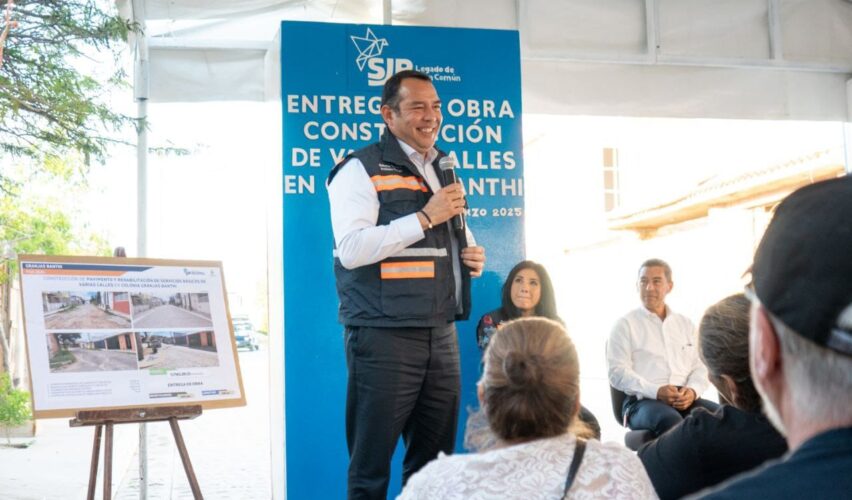 San Juan del Río, Qro., 4 de marzo de 2025.- “Nuestro Legado de Bien Común será implementar obras y más obras en la demarcación”, dijo el presidente municipal de San Juan del Río, Roberto Cabrera Valencia, durante la entrega de la construcción de pavimento y rehabilitación de servicios básicos de las calles Zarco y La Zorra, en la colonia Granjas Banthí, que representaron una inversión de cerca de 2 millones 700 mil pesos.