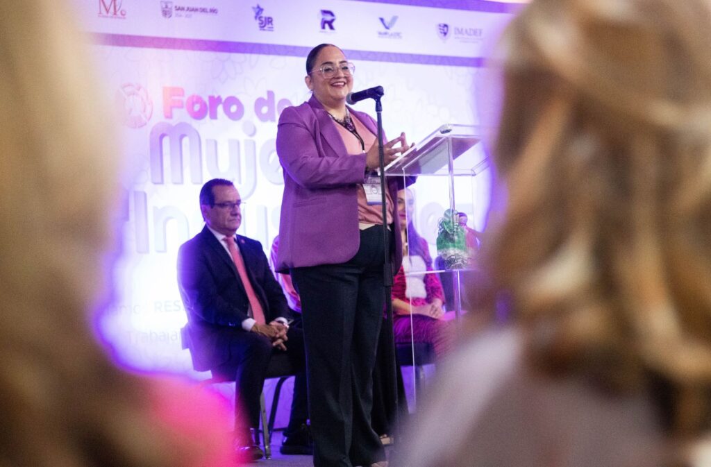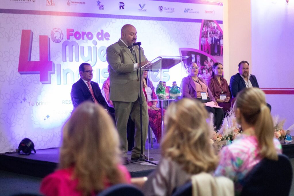 San Juan del Río, Qro., 13 de marzo de 2025.- Las mujeres sanjuanenses juegan un papel de suma importancia en el desarrollo de San Juan del Río, dijo su mensaje la secretaria de Desarrollo Integral y Economico de la demarcación, Guadalupe Gómez Rodríguez, quien asistió en representación del presidente municipal, Roberto Cabrera Valencia, al Cuarto Foro de Mujeres Industriales a cargo de la Cámara Nacional de la Industria de la Transformación (Canacintra).