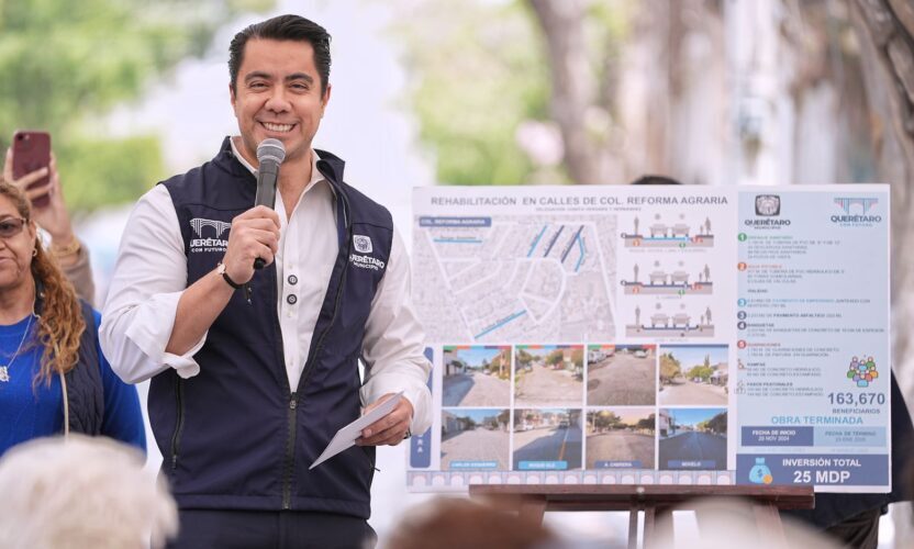 Querétaro., 22 de marzo de 2025.- El presidente municipal de Querétaro, Felifer Macías, entregó la rehabilitación de seis calles en la colonia Reforma Agraria, Delegación Municipal Josefa Vergara, con una inversión de 25 millones de pesos, una muestra del compromiso de su administración para emparejar la cancha y tener un Querétaro con orden y futuro donde todas las familias tengan mejores condiciones de movilidad y bienestar.