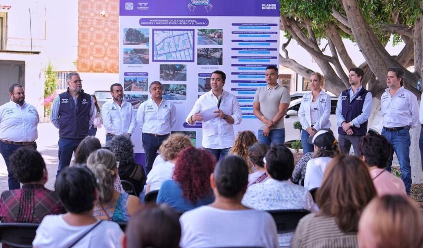 En Ex Hacienda El Tintero se anunció un catálogo de 13 acciones para rehabilitar y mejorar la imagen urbana, en beneficio de 2 mil 790 personas con: desmalezado de más de 10 mil metros cuadrados, poda alta y baja de 189 árboles y el derribo de 7 árboles muertos; reparación de alumbrado público, con 19 nuevos puntos de luz; retiro de 10 toneladas de escombro y tiliches; reparación de 10 metros cuadrados de guarniciones y banquetas; remoción de mil 350 metros cuadrados de grafiti.