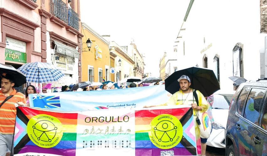 La lluvia acompañó a la 9a. marcha del orgullo LGBTQ+ en la que, con paraguas, impermeables o simplemente con las banderas del movimiento, las personas de la diversidad se adueñaron de las calles del centro histórico queretano en punto de las 16 horas.