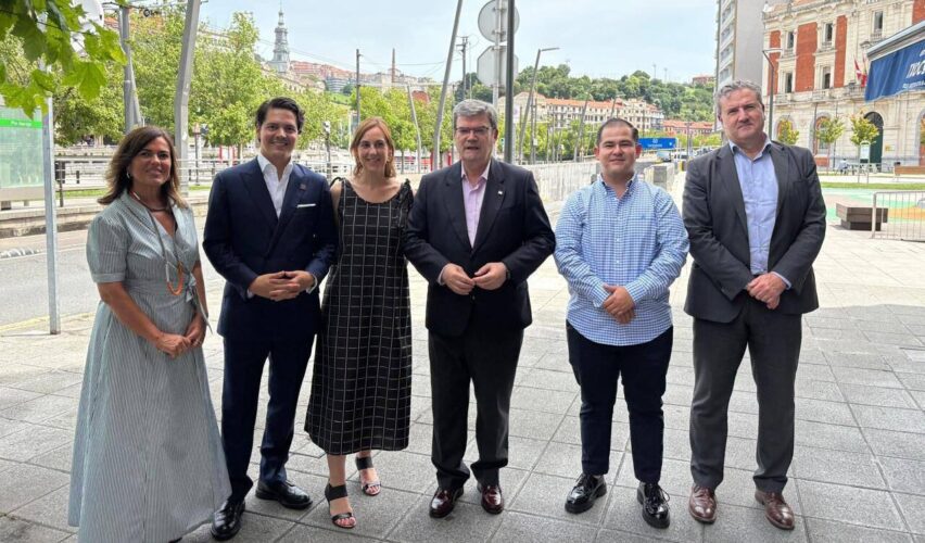 Querétaro, Qro., 30 de junio de 2025.- Como parte de la gira de trabajo por España, el secretario de Desarrollo Económico del municipio de Querétaro, Alejandro Sterling Sánchez, sostuvo un encuentro con el alcalde de Bilbao, Juan Mari Aburto, con quien acordó establecer las bases para una colaboración estratégica en desarrollo económico sostenible e innovación.