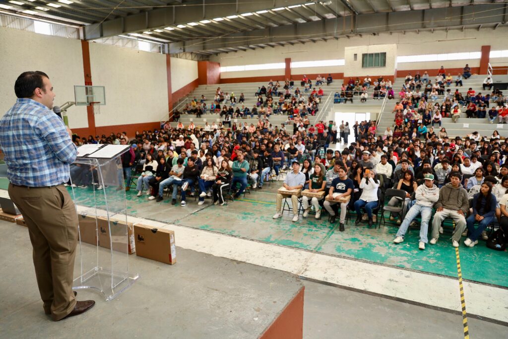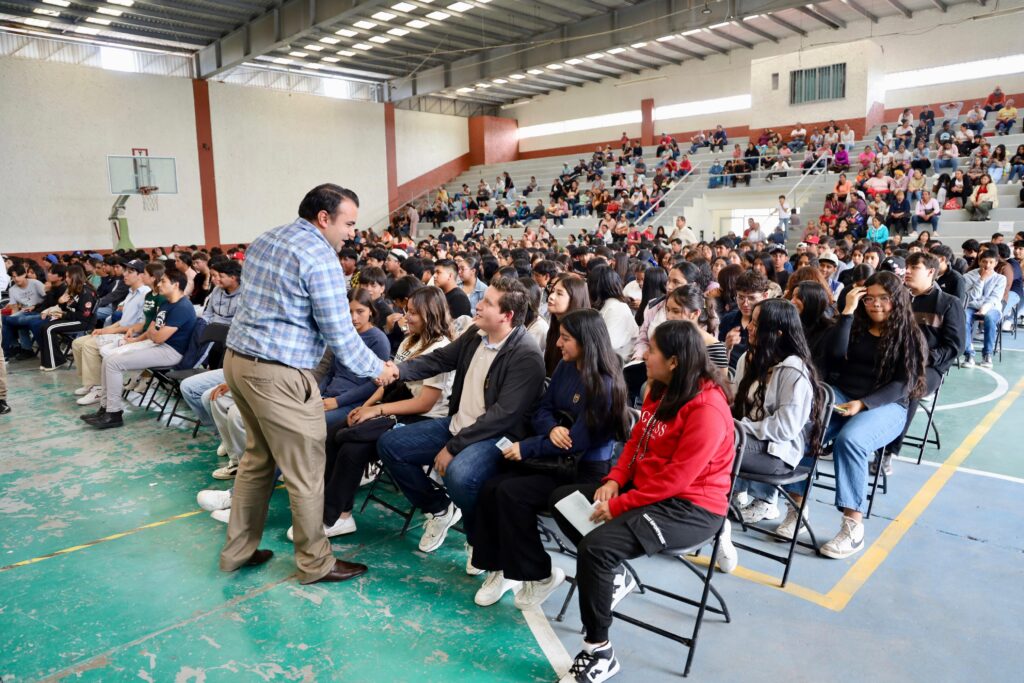 Reunidos en el Auditorio Municipal, pidió a los jóvenes que estén al pendiente de las redes sociales y la página oficial del municipio para conocer las convocatorias de futuros programas en beneficio de la educación.