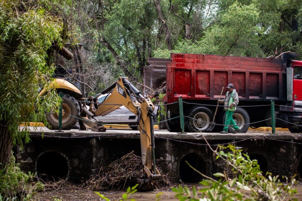 Durante el recorrido en la zona, donde se llevaron a cabo labores de deshierbe, soldadura, pintura, barrido, limpieza, poda, barrido fino, recolección de basura, troncos, ramas y hojarasca, Roberto Cabrera recordó que, antes de la presente temporada, el Gobierno Municipal de San Juan del Río implementó diferentes acciones para prevenir emergencias, mismas que se han intensificado debido a las lluvias que se han registrado en los últimos días.