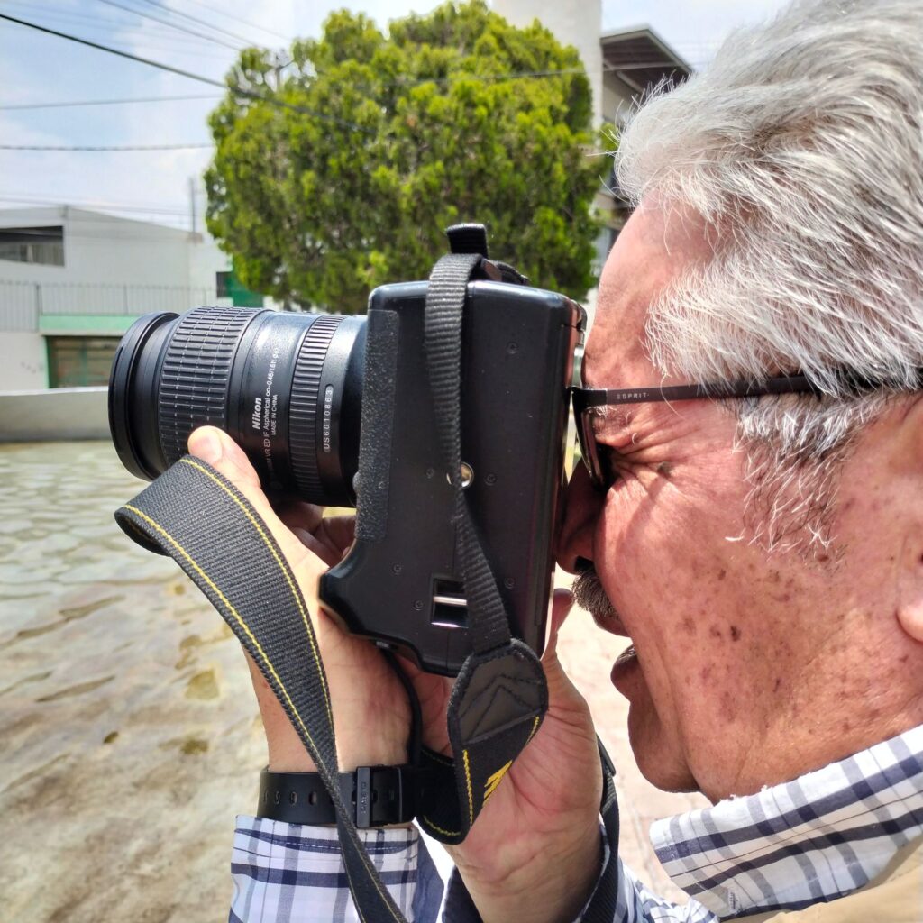 “Éramos un grupo de jóvenes, de chiquillos, que andábamos empezando a querer hacer algo. Resulta que uno de los amigos nos invitó a repartir las fotografías que su hermano tomaba en bodas, 15 años, bautizos… Este amigo nos dice: ‘A mi hermano se le juntaron algunos eventos y quiere que nos vayamos a repartir sus fotos’. Nos daba un peso por cada foto que entregábamos. En ese entonces, se tomaba la fotografía, se levantaba el nombre, la dirección y, posteriormente, se llevaba al domicilio del cliente, dos o tres días después. Entré con ese amigo, pero no con el afán de hacer fotos. Mi idea era terminar la preparatoria y posteriormente probar en el área de Derecho”.