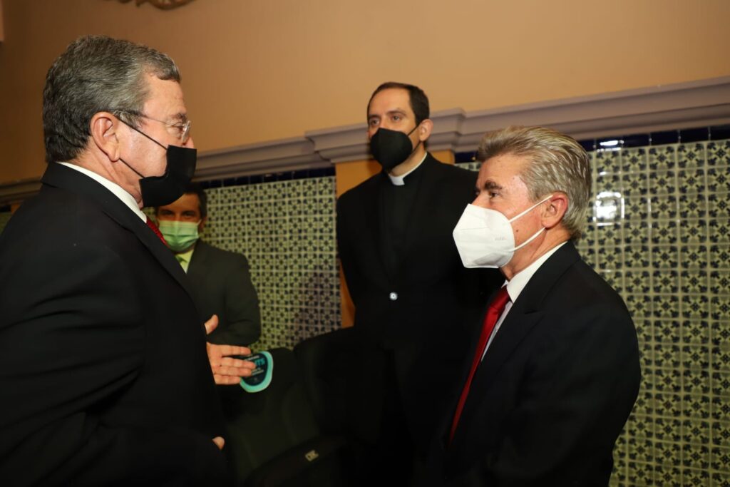 Días de pandemia. Los exgobernadores Mariano Palacios y Enrique Burgos, en amena charla. Foto: Juan Botello