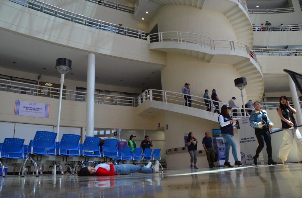 Se recreó para el simulacro un sismo de magnitud 8.1 con epicentro en Lázaro Cárdenas, Michoacán. Participaron 75 brigadistas de distintas dependencias y nueve unidades, quienes atendieron la simulación de un incendio y de cinco personas lesionadas.