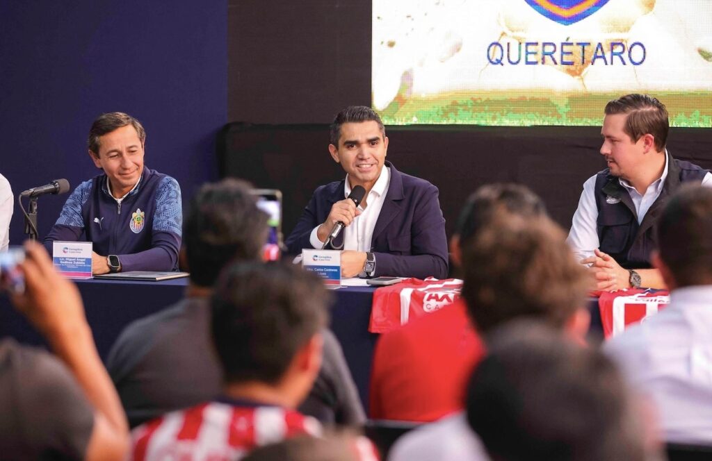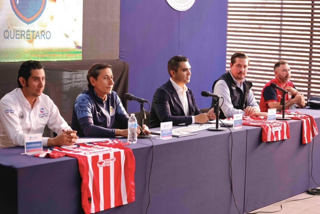 A la rueda de prensa también acompañaron: el titular de la Secretaría de Desarrollo Social del Municipio de Corregidora, Germán Borja; el director del Instituto Municipal del Deporte, Luis Gómez, y el presidente de la Escuela Oficial “Rebaño Chivas Querétaro”, Juan Pablo Hernández.