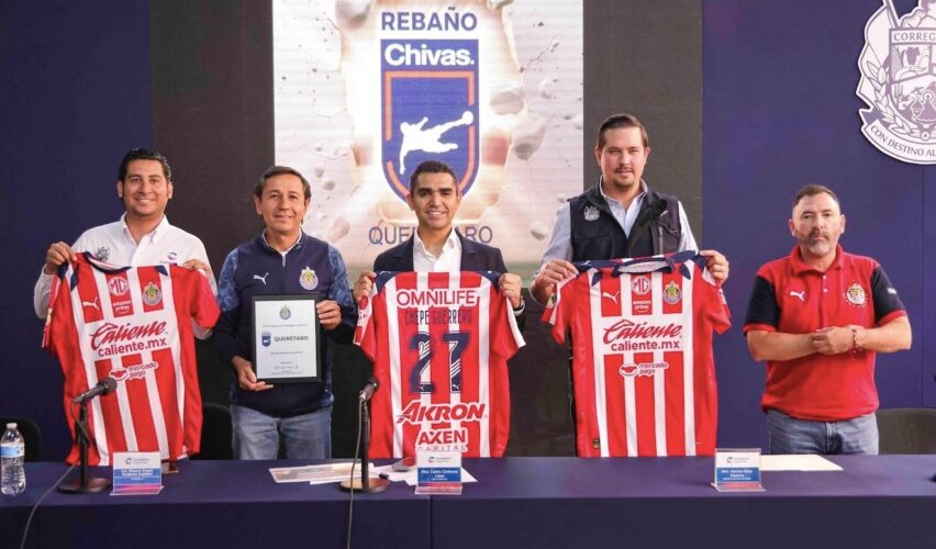 Corregidora, Qro., 29 de septiembre de 2025.- El jefe de Gabinete en el municipio de Corregidora, Carlos Contreras, en representación del alcalde Chepe Guerrero, acudió a la presentación de la apertura de la escuela oficial “Rebaño Chivas Querétaro” en Corregidora, la primera institución reconocida legalmente por Club Deportivo Guadalajara SA de CV.