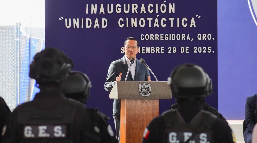 Corregidora, Qro., 29 de setiembre de 2025.- El presidente municipal de Corregidora, Chepe Guerrero, inauguró el nuevo edificio de la unidad cinotáctica de la Secretaría de Seguridad Pública, un espacio que cuenta con áreas de adiestramiento y descanso con capacidad para albergar hasta 26 caninos. En el espacio se invirtieron más de 10 millones de pesos.