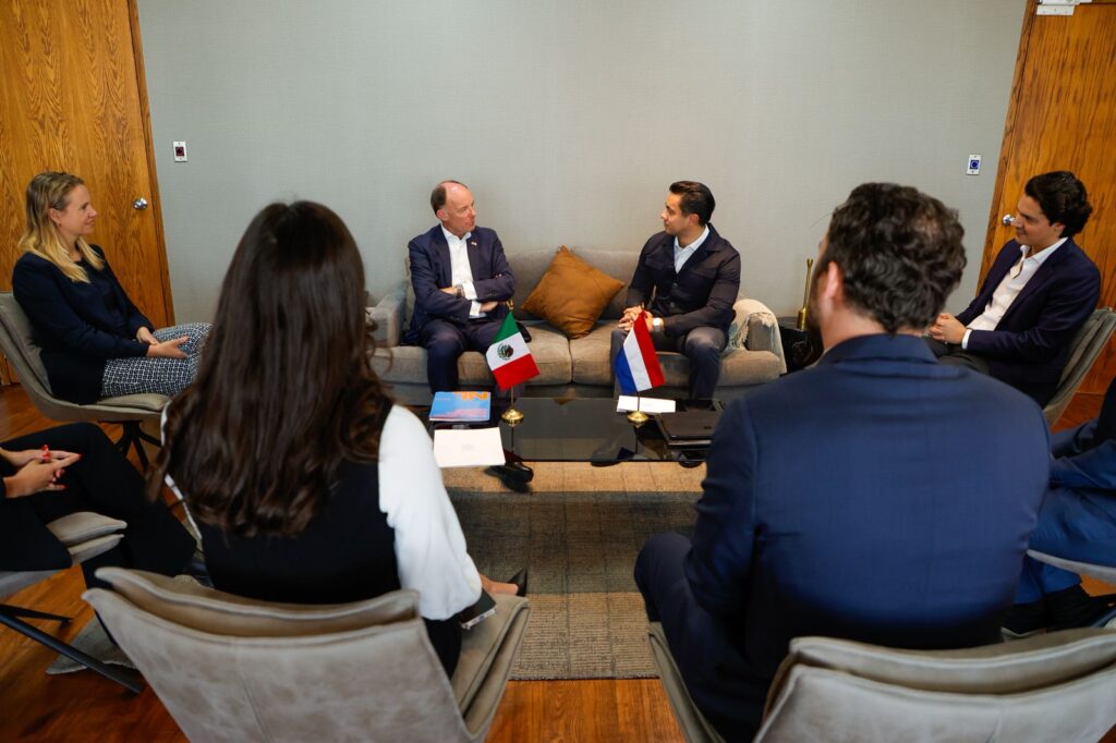 En la reunión también participaron Wendele Van Der Wiele, consejero agrícola; Steven Buter, director de la Oficina Comercial de la Embajada de los Países Bajos en México; Peter Koenderik, coordinador de la misma oficina; Erika Patricia González Maciel, coordinadora de Relaciones Internacionales e Innovación Gubernamental; Alejandro Sterling Sánchez, secretario de Desarrollo Económico; y Daniela Quintana Mena, directora de Relaciones Internacionales.