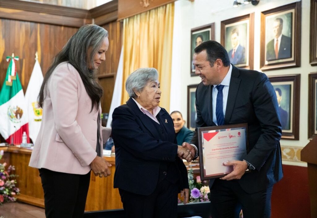 La entrega del reconocimiento se llevó a cabo en sesión ordinaria de Cabildo -celebrada en el Salón Presidentes de la Antigua Presidencia Municipal, ubicada en el Centro Histórico de la demarcación-, luego de que el dictamen para este propósito fue aprobado por unanimidad de las y los integrantes del Ayuntamiento de San Juan del Río, el cual fue emitido por la Comisión de la Mujer y la Familia, presidida por la regidora Norma Angélica Díaz Martínez.