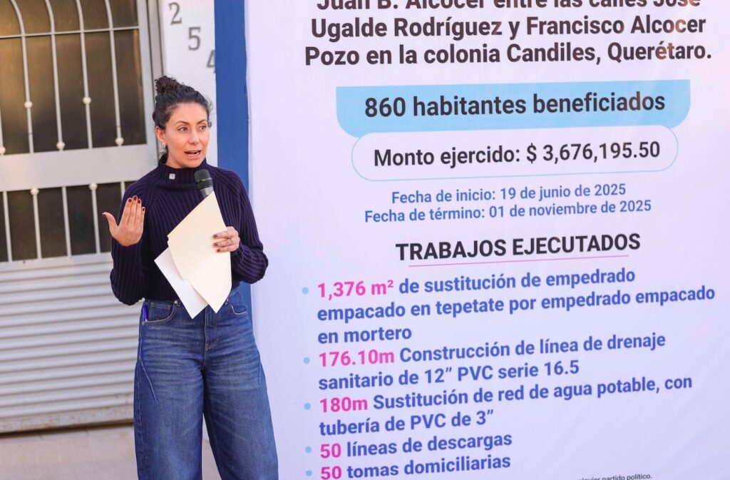 Corregidora, Qro., 28 de noviembre de 2025.- La secretaria de Obras Públicas del municipio de Corregidora, Viridiana Nava, entregó la urbanización de la calle Juan B. Alcocer en la colonia Candiles, una obra en la que se invirtieron más de 3 millones de pesos.