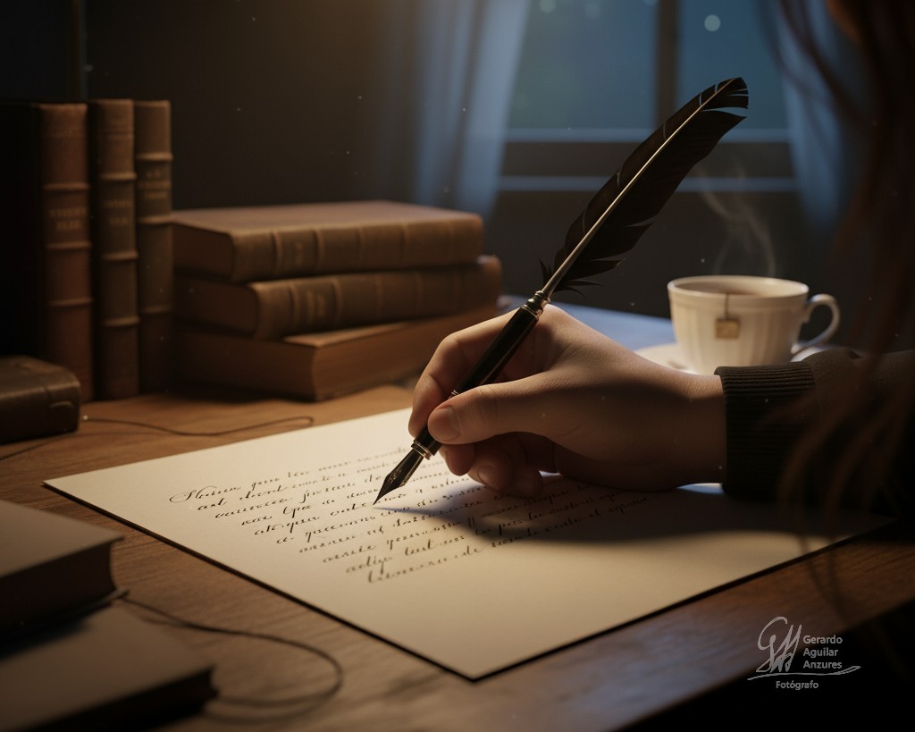 La luz de luna cae sobre el papel, el vecindario está tranquilo,