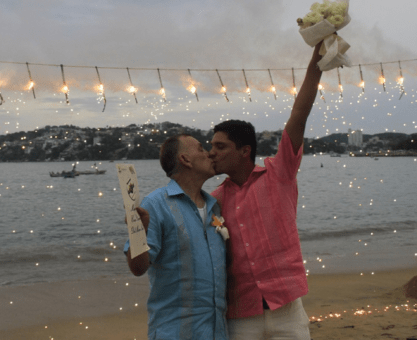 El mar y el suave rugir de sus olas antes de estallar contra las vallas de contención se funden con los suaves acordes de música...
