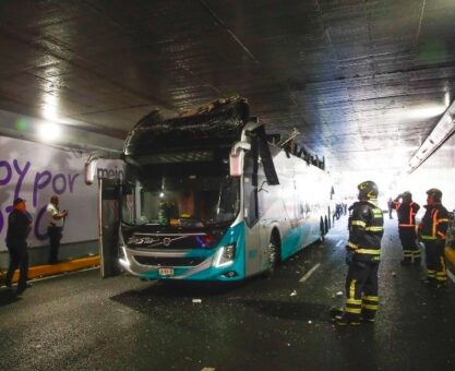 REDACCIÓN/LALUPA.MX Ciudad de México, 4 de febrero de 2024.- Un autobús de dos pisos intentó pasar por un bajo puente en la avenida...