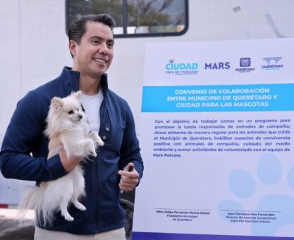 Firma Felifer Macías convenio entre municipio de Querétaro y Mars Petcare México