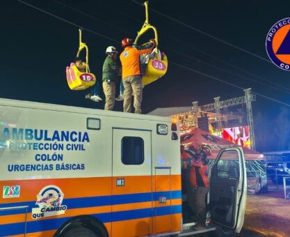 Evacúa Protección Civil de Colón a ocho personas de juego mecánico que falló