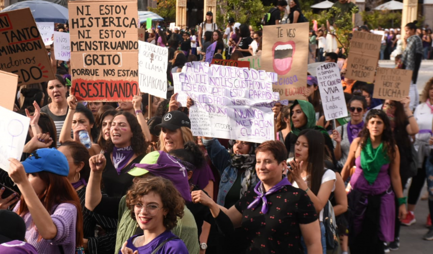 Poco después de las 4 de la tarde, miles de mujeres empezaron el recorrido desde la Plaza Constitución por diversas calles del centro, para protestar por la violencia feminicida con motivo del día internacional de la mujer. El camino parecía no tener fin: avenida Juárez, Zaragoza, Corregidora y en cada una los mismos coros, las mismas demandas. Protección Civil estatal calculó una asistencia de alrededor de diez mil mujeres.