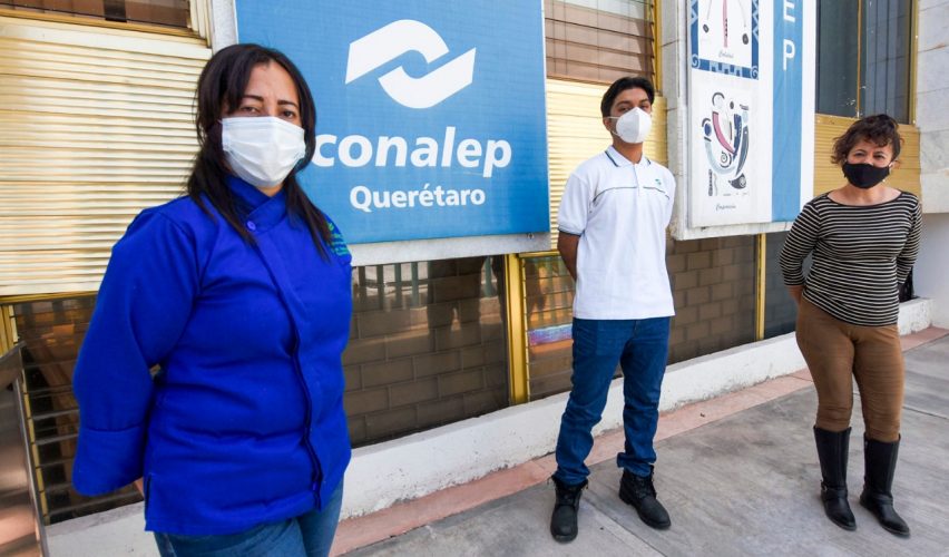 La voz de Abraham Morales Olvera, estudiantes de electromecánica industrial, es alegre. Detrás de la mascarilla se adivina una sonrisa que se confirma en sus ojos, cuando habla de la formación dual que recibe en el Conalep Querétaro, sistema que le permite pasar tiempo en los salones de clases aprendiendo la teoría, pero también aplicar ya en una empresa los conocimientos para su vida profesional.