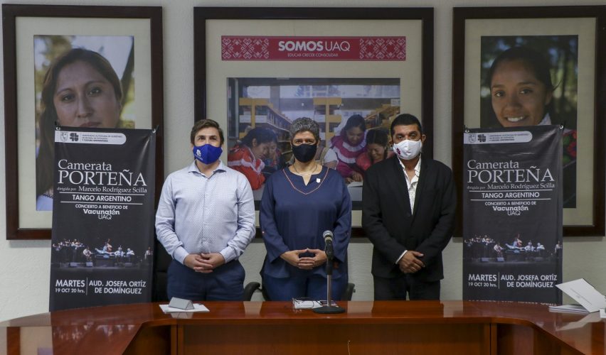 Querétaro, Qro., 5 de octubre de 2021.- La Universidad Autónoma de Querétaro (UAQ), a través de la Secretaría de Extensión y Cultura Universitaria (SECU), invitan a la población a acudir al concierto de tango argentino “El Ángel Vive” de la Camerata Porteña, dirigida por Marcelo Rodríguez Scilla, por medio del cual se pretende recaudar alrededor de 1 millón de pesos en beneficio del desarrollo de la vacuna QUIVAX 17.4.