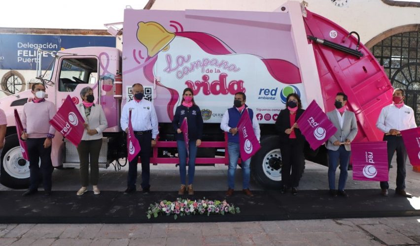 Querétaro, Qro., 7 de octubre de 2021.- En el mes de la lucha contra el cáncer de mama, cuyo día internacional se conmemora el 19 de octubre, la empresa Red Ambiental y la Secretaría de Servicios Públicos del municipio de Querétaro colaboran en la octava Campaña Rosa, que promueve la prevención y detección temprana de esta enfermedad.