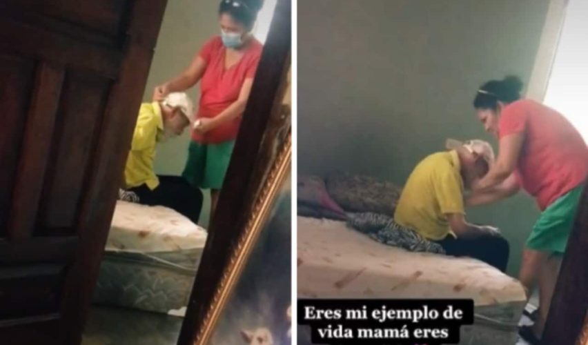“Mi mamá y mi papá se separaron hace años. Mi papá eligió a otra. Él es mi abuelo de 98 años (papá de mi papá). Mi mamá lo baña, lo cambia y lo cuida con mucho amor”, contó la joven.
