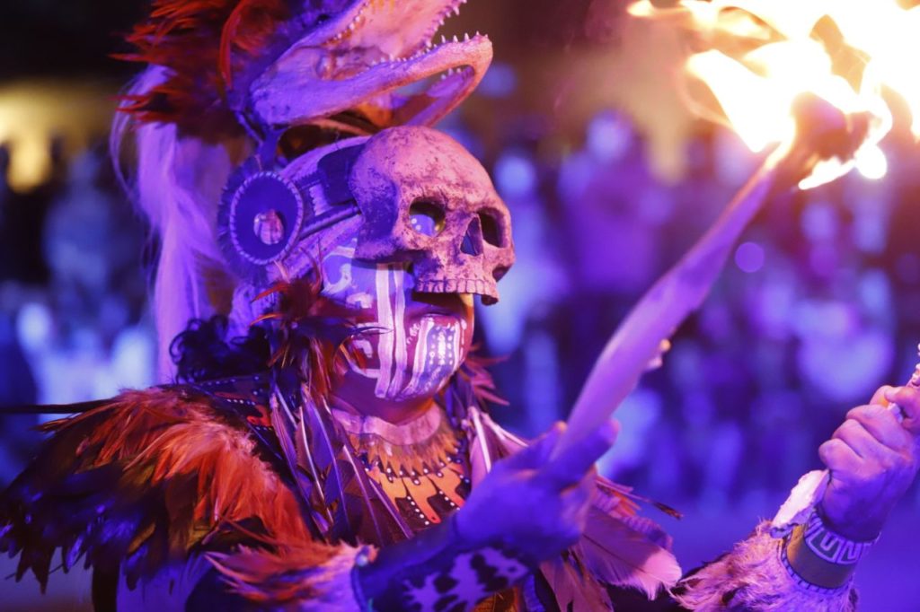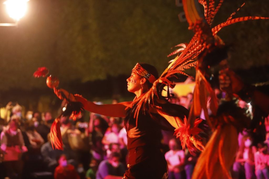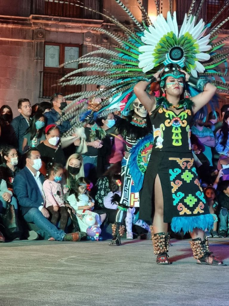 También se presentó el espectáculo prehispánico Cem-Pohoali-Mictlán de la compañía Aztlán, y la experiencia audiovisual Viaje virtual al Mictlán, que también será proyectada hoy en las delegaciones Epigmenio González y Félix Osores, mientras que mañana 30 de octubre se exhibirá en las delegaciones Centro Histórico y Félix Osores.